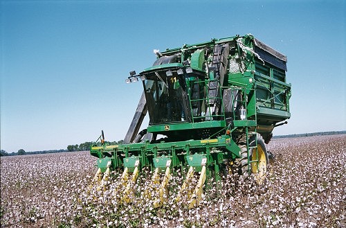 コンバインによる綿花の収穫