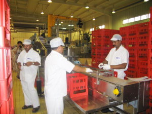 この地域の気候は牛が育つのには大変きびしいため、牛舎は空気冷却器によって27度以下に保たれています。また、暑すぎる直射日光はスライド式のパネルで防いでいます。乳牛から乳を搾る搾乳は、すべてコンピューターでオートメーション化されコントロールされています。同じ敷地の中には、同じくオートメーション化されたフランスの企業であるダノンが運営する乳製品工場があります。この工場では、年間2億2000リットルの牛乳を生産し、サウジアラビアの国内消費量の約3分の一をこの工場が生産しています。