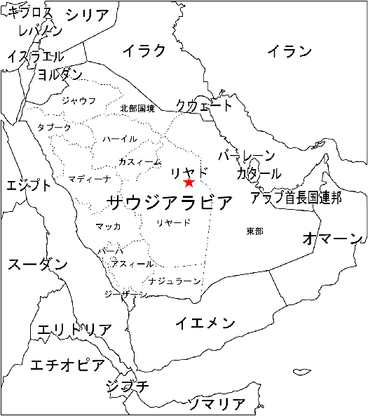 サウジアラビアは、アラビア半島の大部分をしめて、紅海やペルシア湾に面しています。国内には13の州がありますが、それぞれの州の知事(アミール)は、すべてサウード家の親族が任命されています。